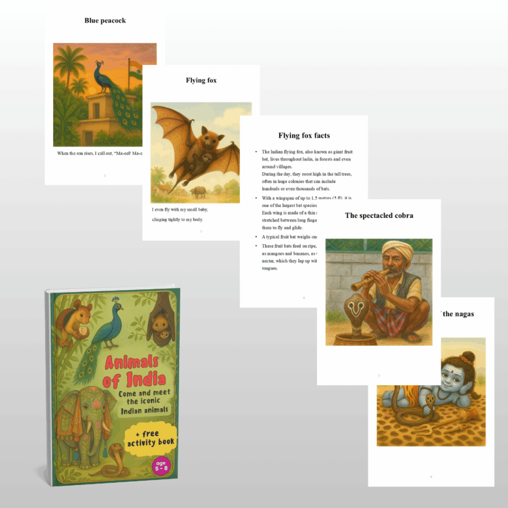 From the shimmering blue peacock and the mighty elephant to the mysterious cobra, the colourful giant rainbow squirrel and the graceful flying fox, this beautifully illustrated children’s book invites readers to explore India’s extraordinary wildlife.